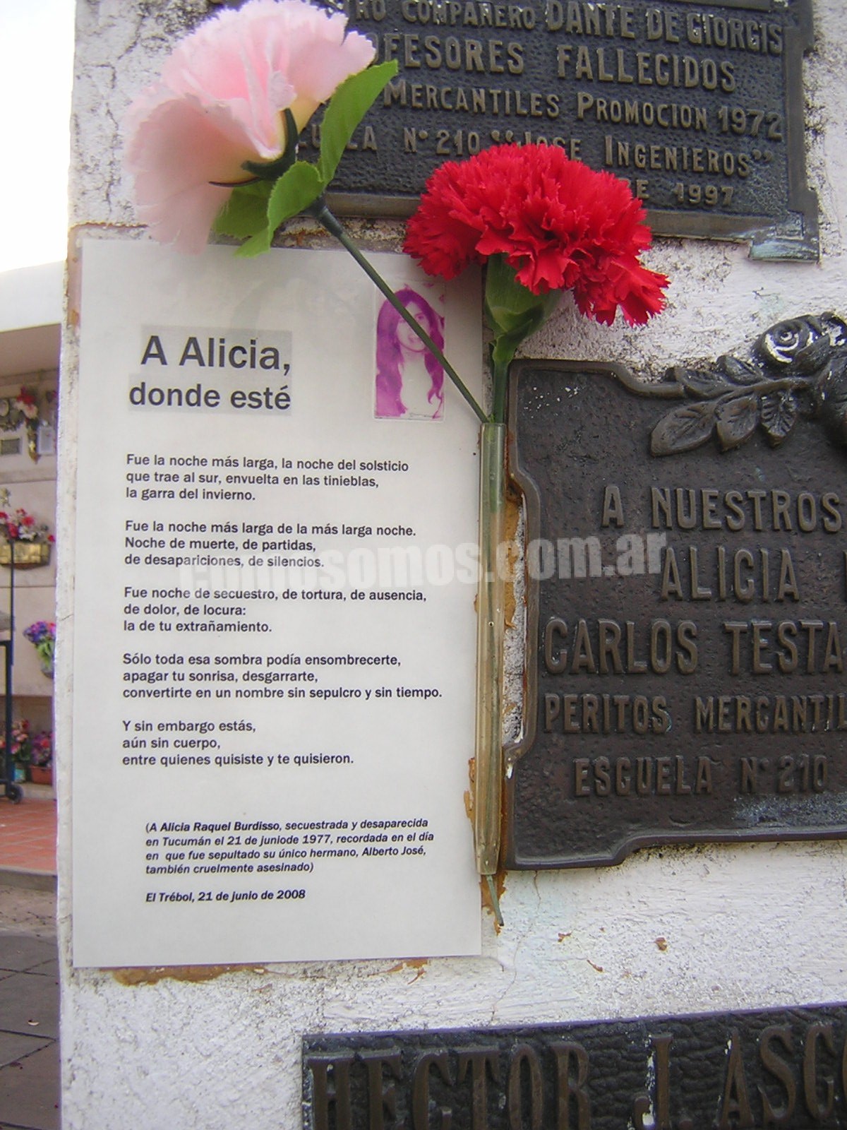 El 13 de diciembre de 2013 el Tribunal Oral Federal de Tucumán que llevaba adelante uno de los juicios por la verdad sobre lo ocurrido durante la dictadura cívico-militar iniciada el 24 de marzo de 1976, emitía las sentencias por el secuestro y desaparición de más de doscientas personas entre las que se contaba la Alicia Raquel Burdisso, de 24 años, oriunda de El Trébol.