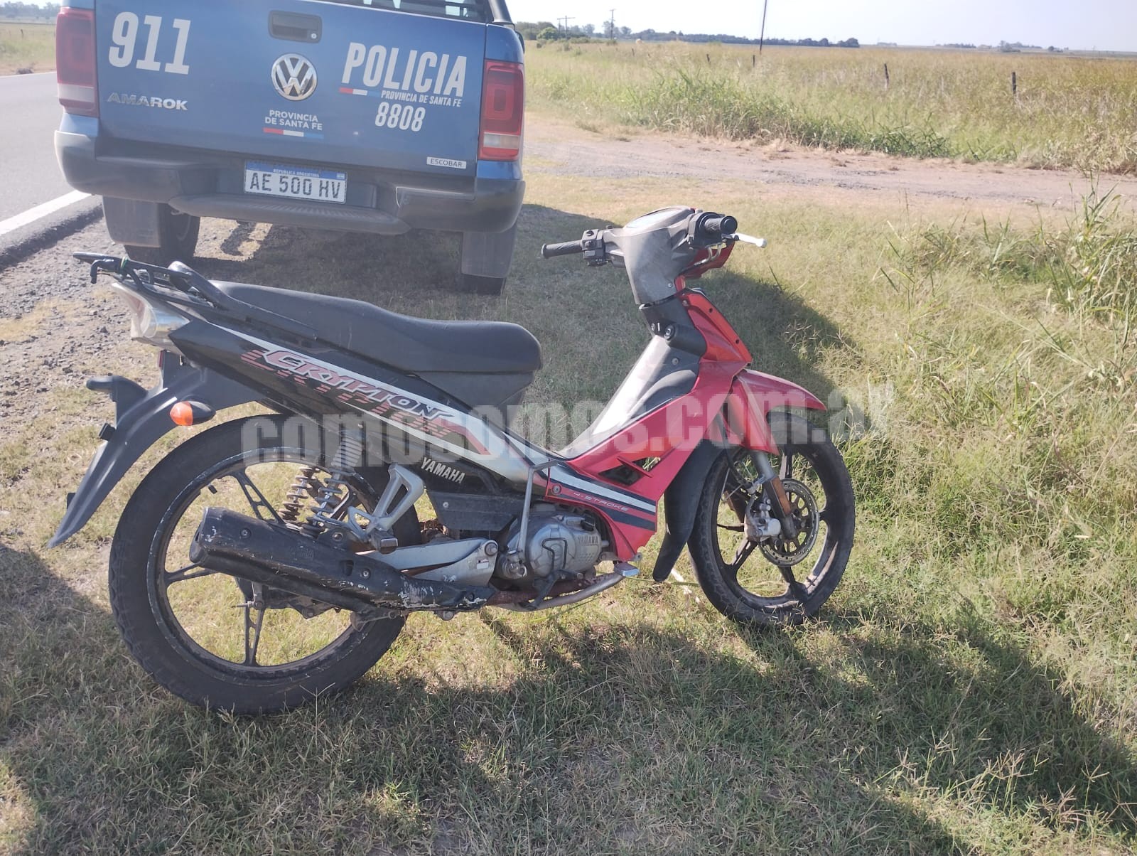 En momentos en que los delincuentes observan las balizas del móvil policial, detienen su marcha, descartan la motocicleta que traían de tiro arrojándola sobre la banquina Oeste entre los pastizales y comienzan a darse a la fuga por el camino Rural 52 hacia el Este.