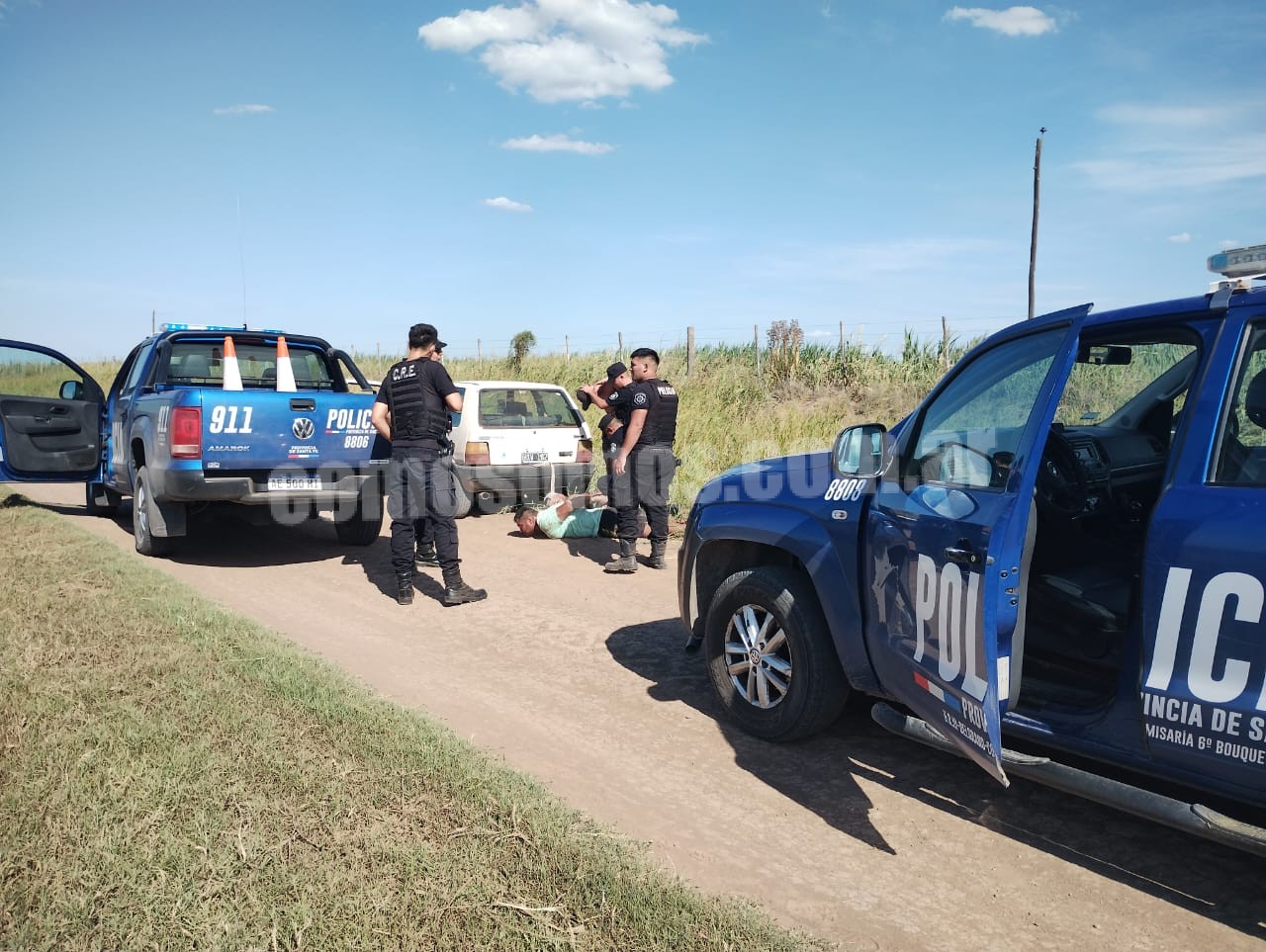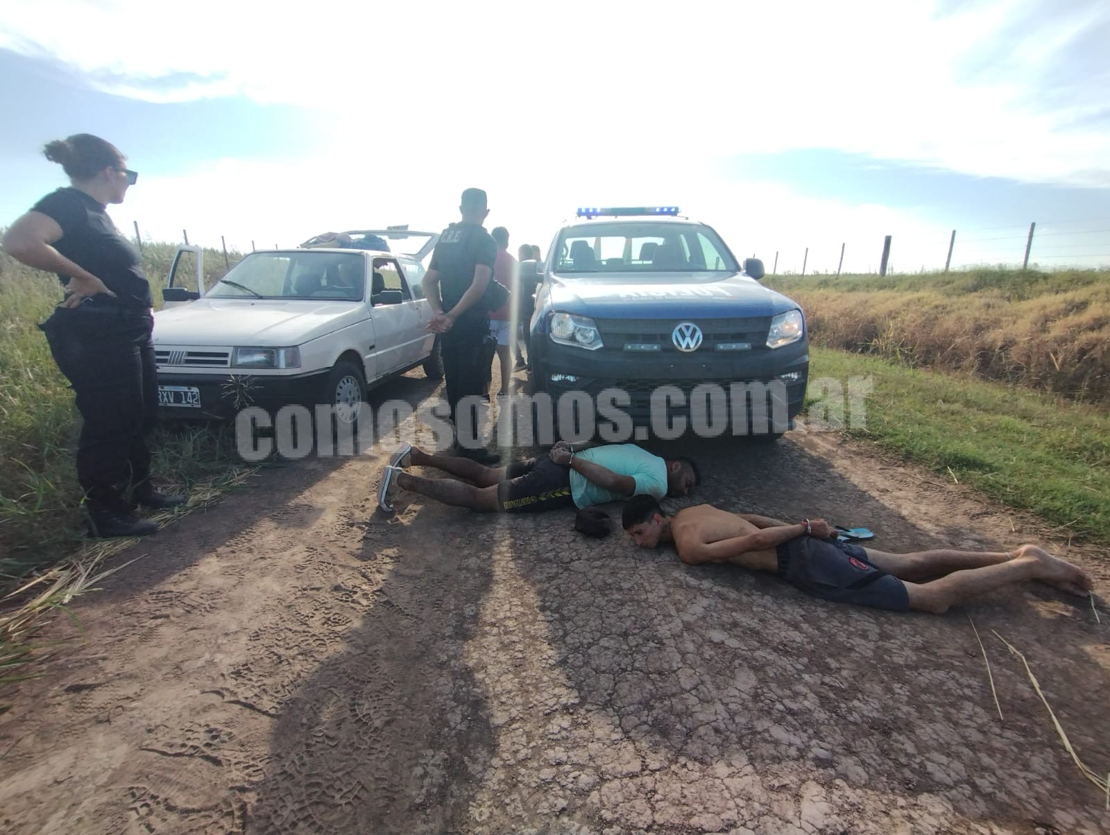 Comienza una persecución con el móvil policial del comando y luego de unos seis kilómetros aproximadamente, tras realizar señas de luces y balizas a los fin de que cesen con su actitud, detienen la marcha. A viva voz se les solicitó que salgan del vehículo, se les colocan las esposas de seguridad y se consulta telefónica con la Dra. Gabriela Lezcano, quien ordena que los masculinos sean trasladados a la dependencia policial y queden detenidos hasta tanto se realice la audiencia imputativa.