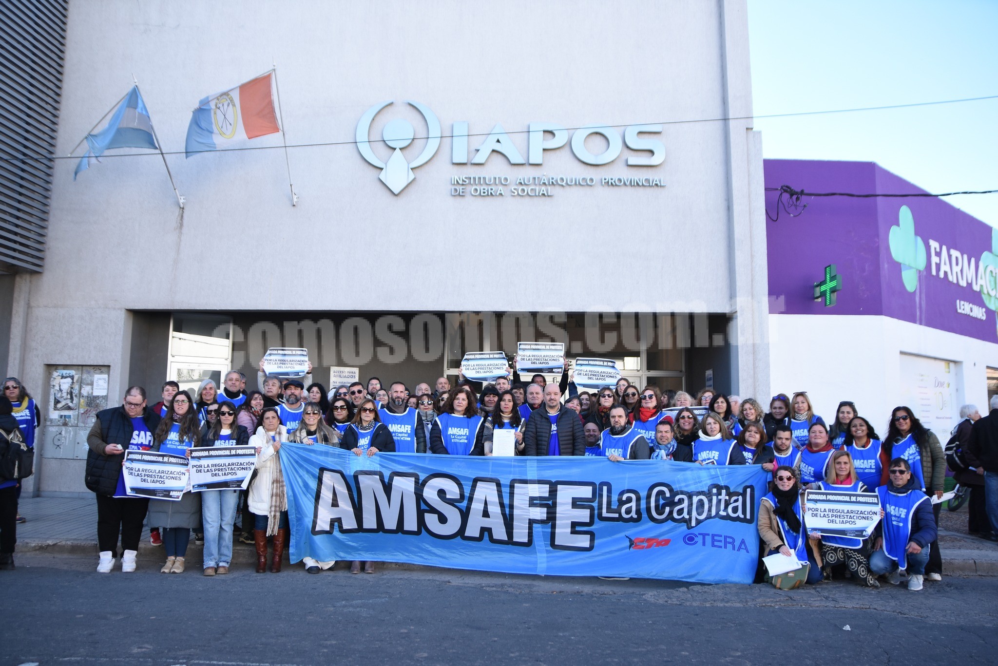 En una jornada de movilización y protesta, la Asociación del Magisterio de Santa Fe (AMSAFE) llevó a cabo este viernes una concentración frente a la sede central del Instituto Autárquico Provincial de Obra Social (IAPOS) en la ciudad de Santa Fe, para dar inicio a la campaña provincial “En defensa del derecho a la salud y la cobertura del IAPOS”. Esta iniciativa también se replicó en distintas localidades de la provincia, visibilizando la preocupación de miles de docentes activos y jubilados frente a la situación de la obra social.