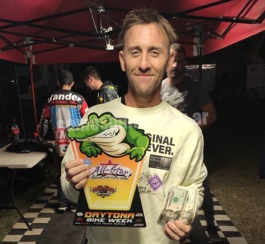 Capitani se mostró optimista de cara a las carreras del domingo, con el objetivo de seguir mejorando su desempeño en esta desafiante competencia en la categoría «American Flat Track» a bordo de una Honda 450 cc.
