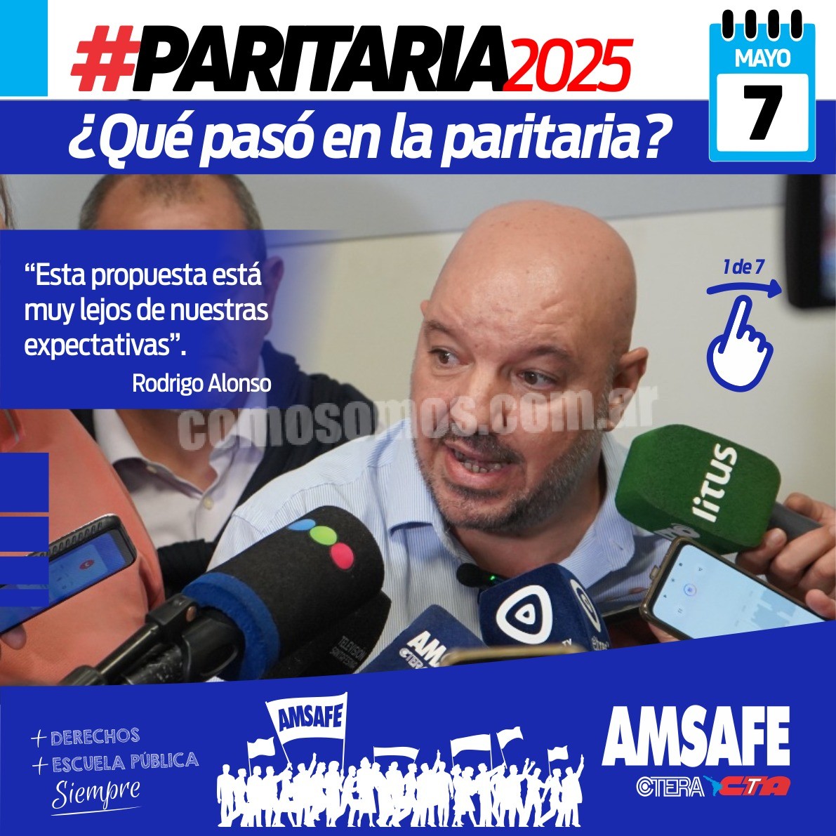 En una nueva reunión paritaria llevada a cabo ayer, miércoles 7 de mayo, en el Ministerio de Trabajo, Empleo y Seguridad Social de la provincia, el gobierno de Santa Fe presentó una propuesta salarial para el sector docente que fue calificada por la Asociación del Magisterio de Santa Fe (AMSAFE) como «muy lejos de las expectativas» tanto de activos como de jubilados.