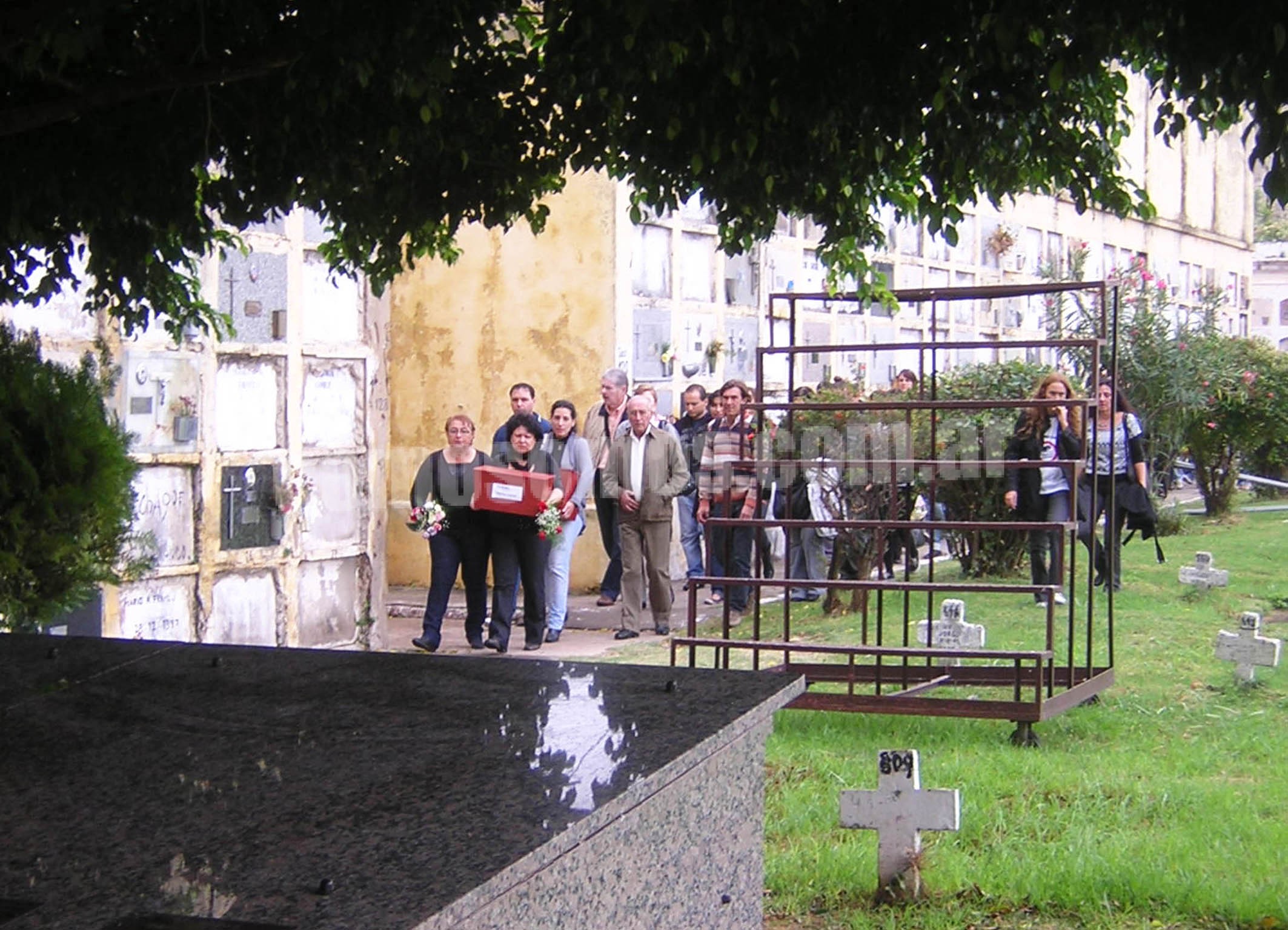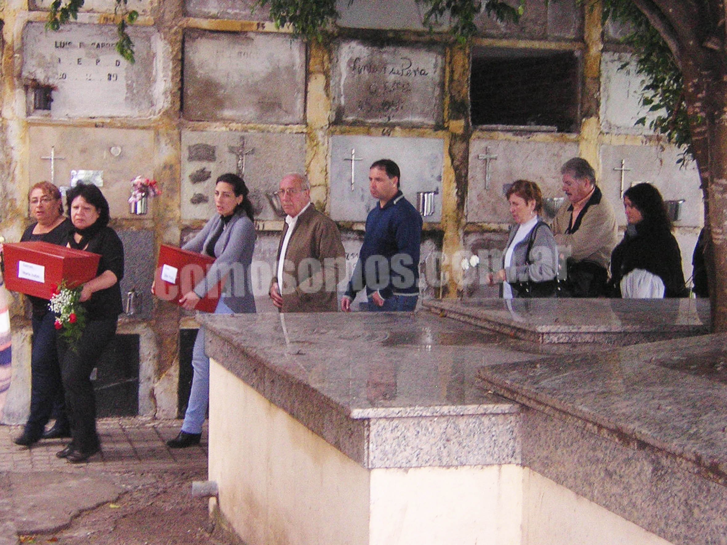 Dos muchachos –uno de ellos Miguel Nievas, del Equipo Argentino de Antropología Forense que había descubierto y excavado la fosa común donde, entre otros, estaban los cuerpos de Carlitos y Mary– corrieron la tapa de la bóveda del panteón y las urnas con los restos fueron depositadas en su interior.