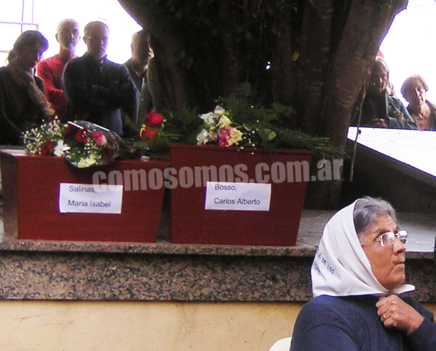Unos momentos antes, en la puerta de la necrópolis, Liliana Salinas había dicho, señalando hacia los puestos de flores alineados a lo largo de la vereda: «Allí trabajaba mi mamá». Se refería a la madre que nunca pudo enterarse de dónde estaba su hija María Isabel, arrebatada en Rosario por la mano oscura de la dictadura en 1977 junto a su marido, Carlos Bosso, y la hijita de ambos, Mariana, porque murió dos meses antes de que los restos de Carlitos y Mary fueran hallados en una fosa clandestina en el campo militar San Pedro junto a los de otras seis víctimas del terrorismo de Estado.