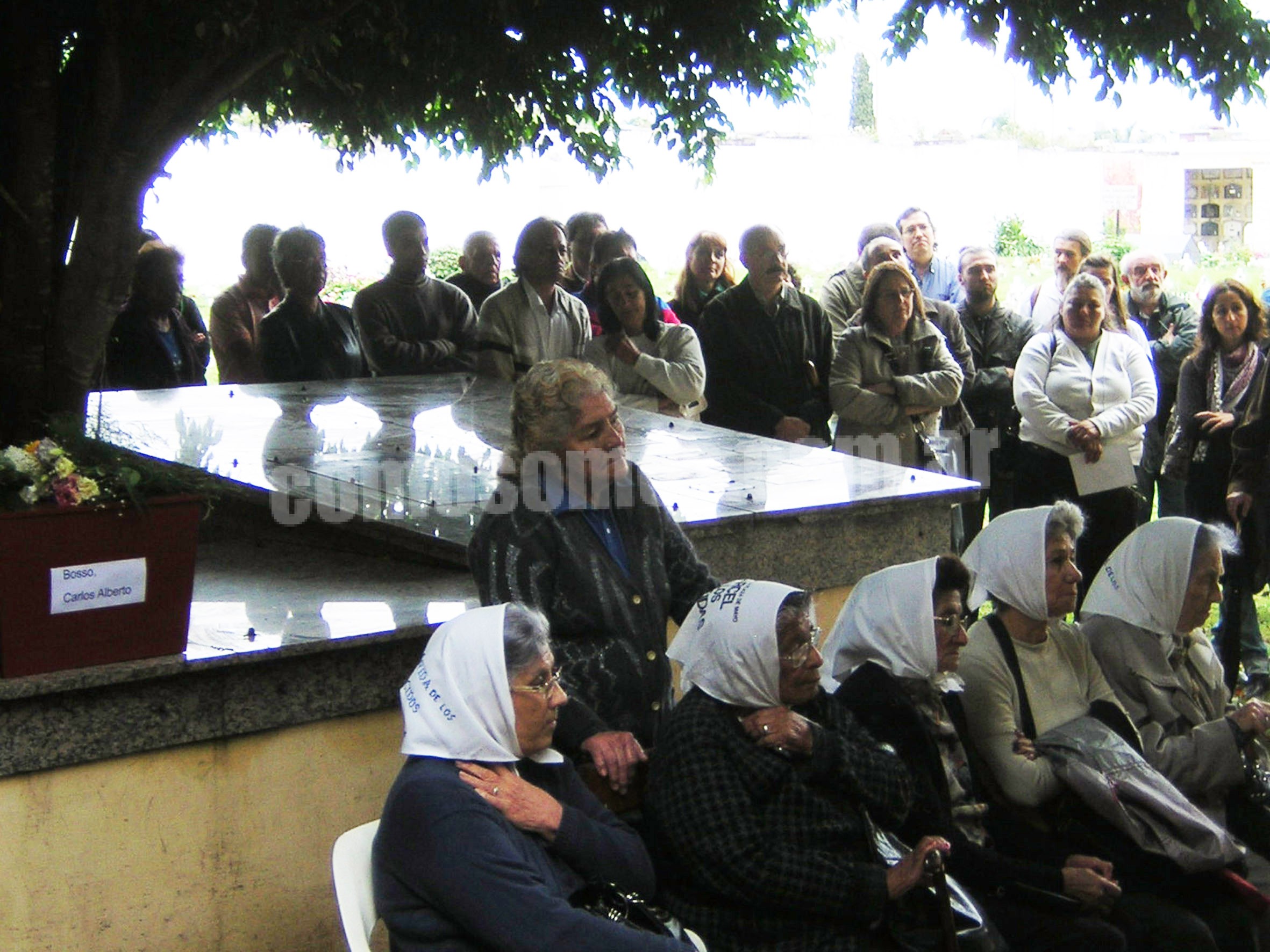 Cuando la columna llegó al Panteón de la Memoria las urnas fueron colocadas sobre la cubierta de mármol, a espaldas de las Madres con pañuelo blanco que asistieron a la ceremonia, mientras amigos, familiares y compañeros de Carlitos y Mary se aprestaban a recordarlos.