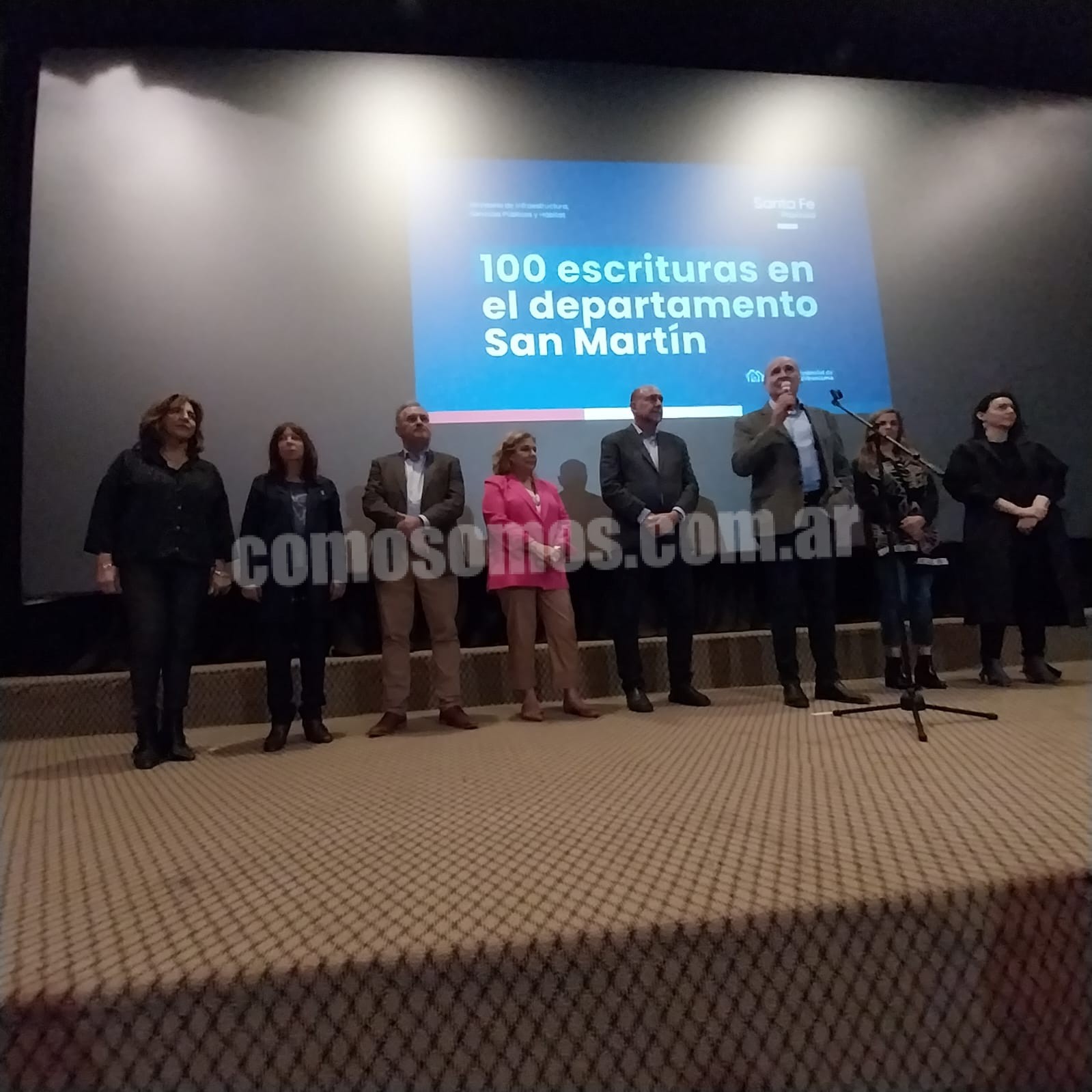 En su recorrido por el Departamento San Martín y tras inaugurar dos quirófanos y una sala de partos en el SAMCo de San Jorge el gobernador Perotti y la senadora provincial Cristina Berra quien ha gestionado y trabajado para que estos proyectos se lleven adelante se dirigieron al Complejo Cultural del municipio sanjorgense donde el el gobernador encabezó el acto de entrega de 100 títulos de escrituras del programa FO.NA.VI a sus propietarios.