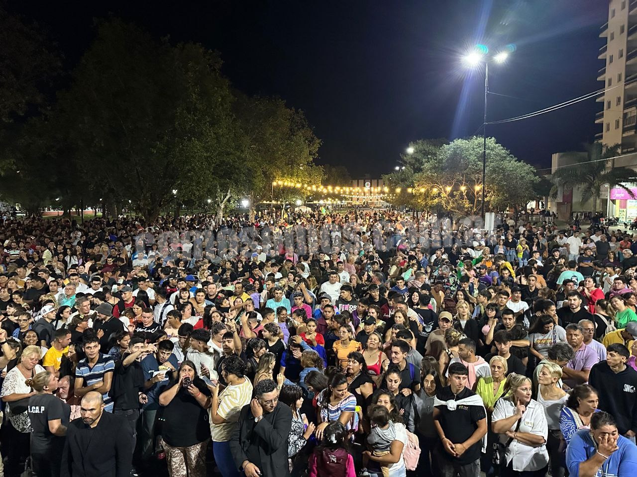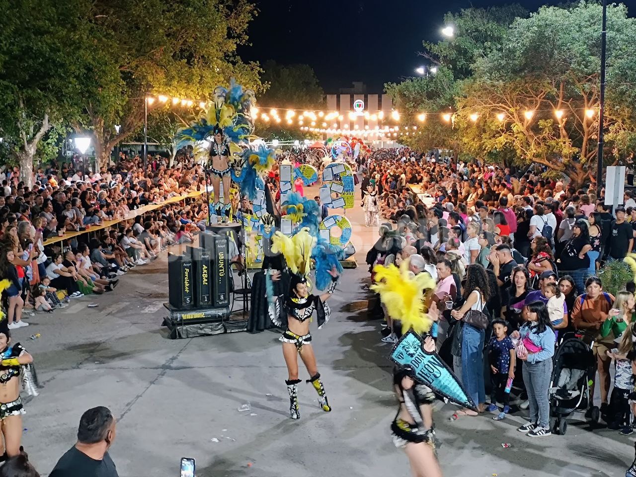 El desfile de comparsas fue uno de los momentos más esperados de la noche. Los pasistas, con sus llamativos disfraces y llenos de energía, recorrieron la calle interior de la plaza, contagiando su alegría al público. El ritmo contagioso de la música, a cargo de destacados artistas locales, puso a bailar a todos los presentes.