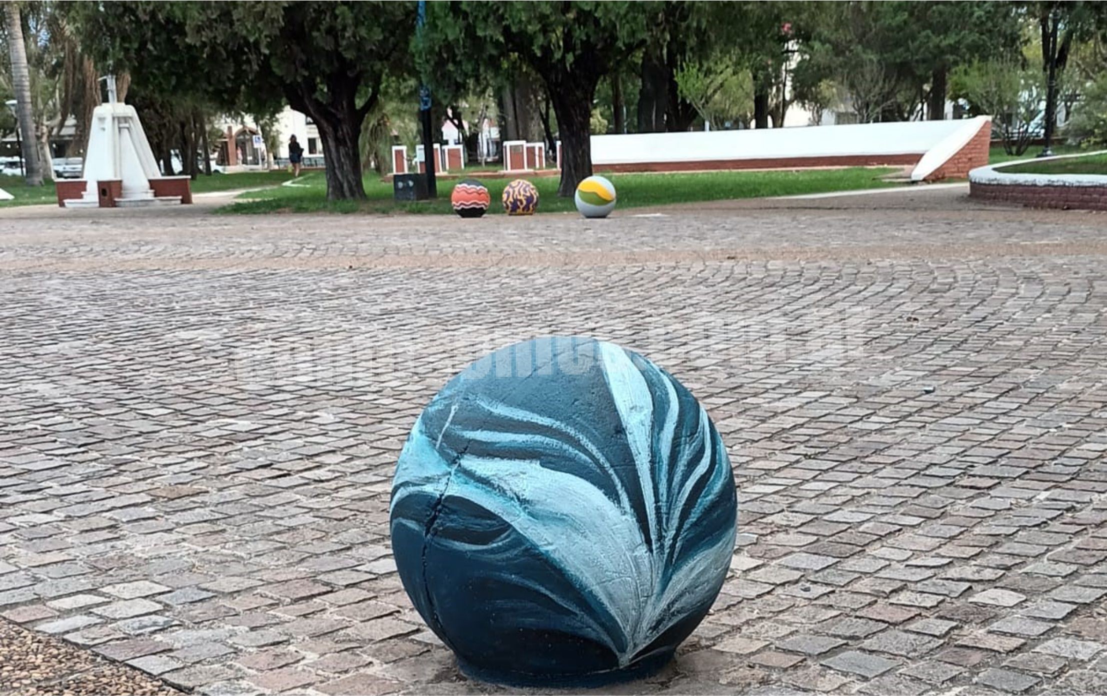 En el centro de la plaza de la ciudad de San Jorge se encuentra el monumento al General San Martín. Alrededor del mismo hay esferas de cemento las cuales fueron intervenidas en el día de hoy por la artista Ainalén Rojas.
