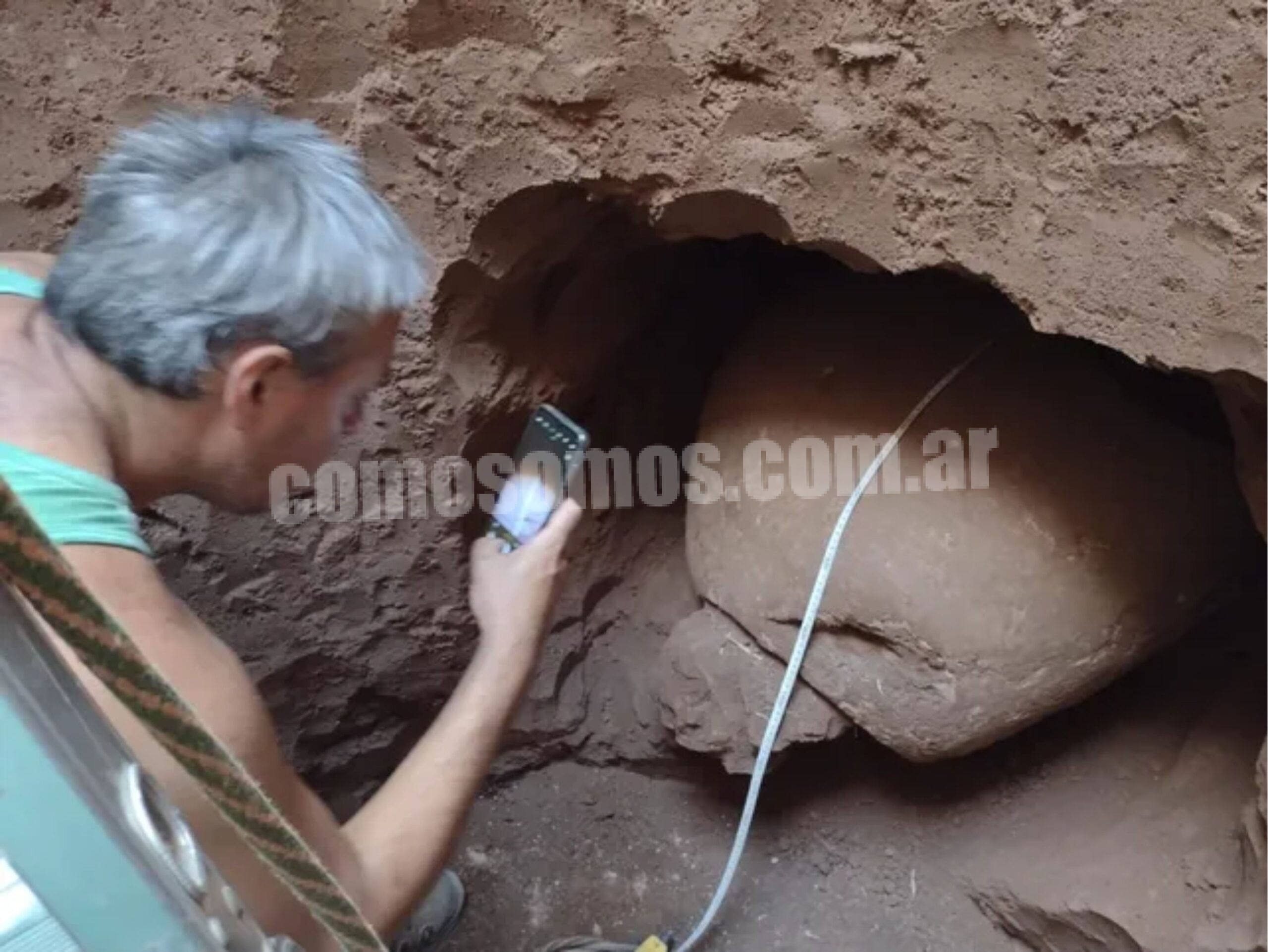 “Estamos trabajando en Las Petacas, en un pozo ciego de unos cuatro metros de profundidad. Es un neoclerocalyptus que es la especie de gliptodonte más chico”, señaló y agregó: “Vamos a rodear la coraza, tratando de no trabajar sobre el resto fósil, sino que dejaremos sedimento, parte de la tierra que tiene y luego vamos a hacer un paquete con yeso para levantarlo”.