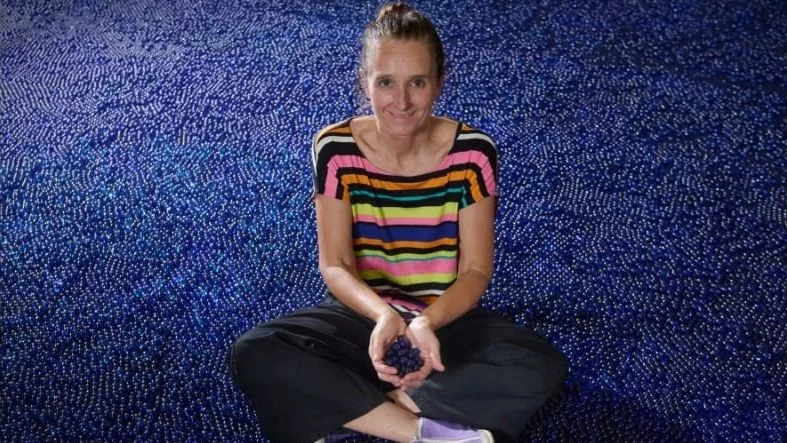 “Opi” cuenta con 440.000 bolitas de vidrio azules y metal pintado, fabricadas en Tinka (única fábrica de Bolitas de sudamérica, ubicada en la ciudad de San Jorge).