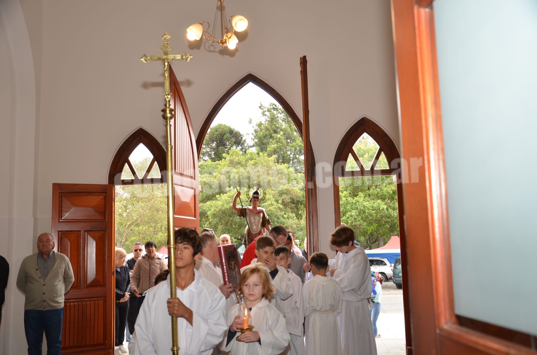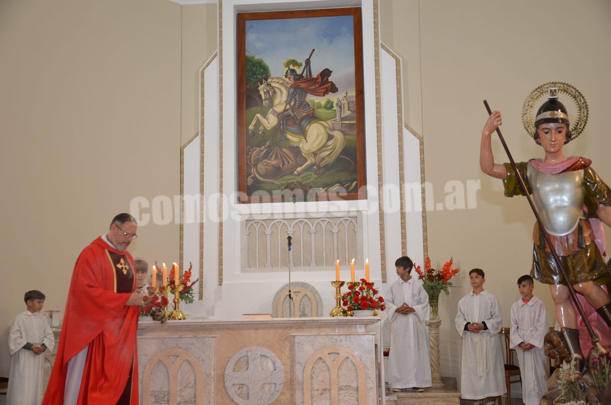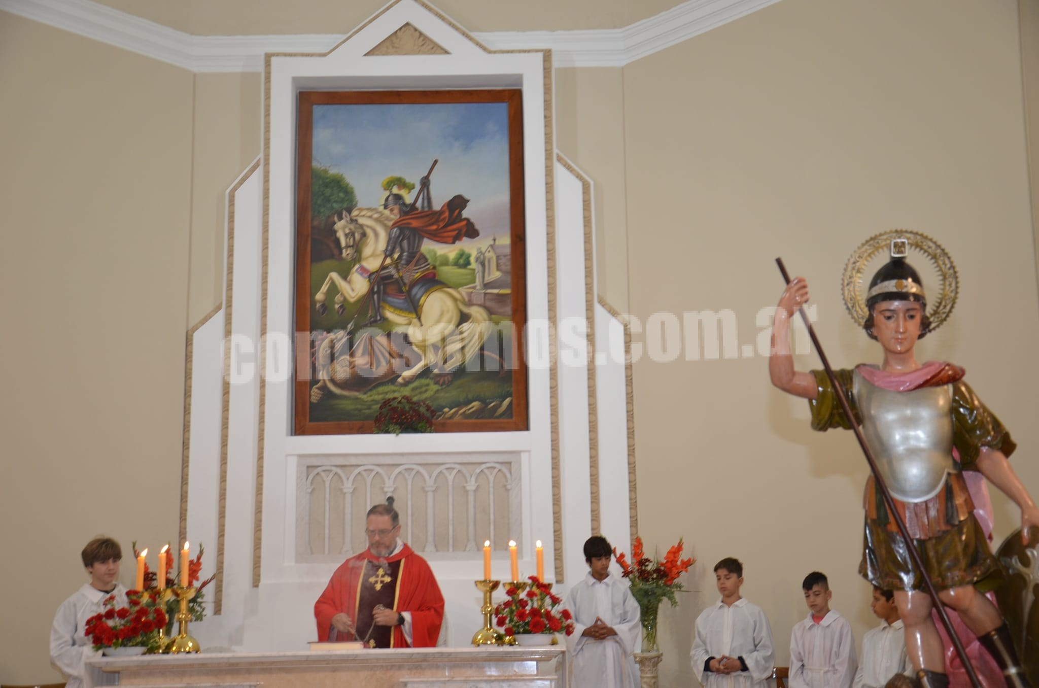 Autoridades, representantes de instituciones con sus abanderados y feligreses acompañaron por las calles céntricas la figura de San Jorge. Seguidamente el Padre Rodrigo Spagna, celebró la Santa Misa.