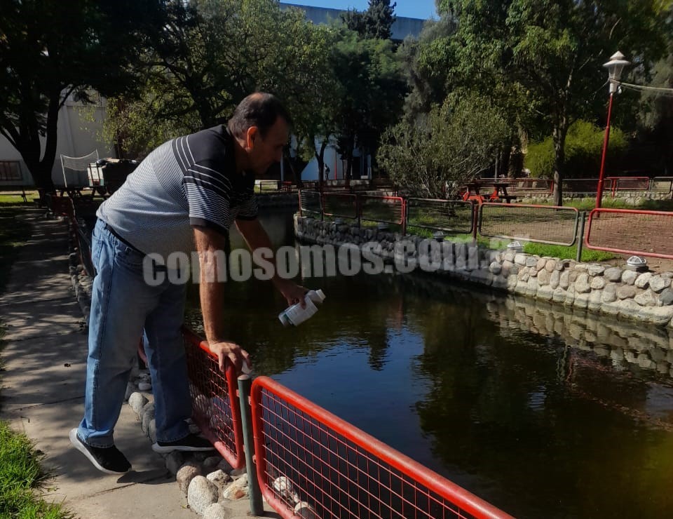 Por otro lado, esta mañana se colocaron larvicidas de suspensión acuosa en piletas y en el lago de Club Atlético San Jorge para erradicar larvas del Aedes Aegypti, como así también, se colocaron pastillas de liberación lenta para larvas en todo el trayecto del Canal Pluvial Norte.