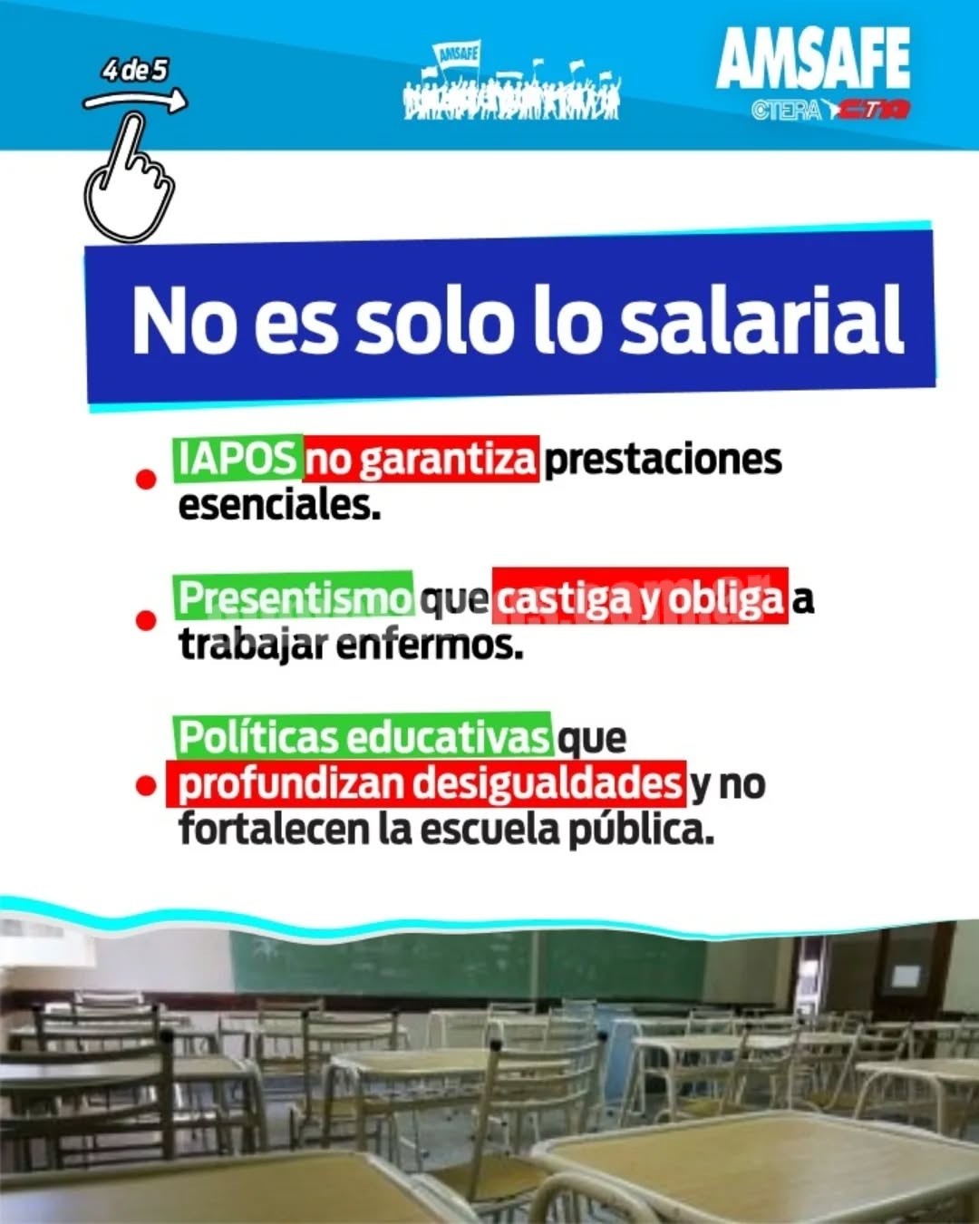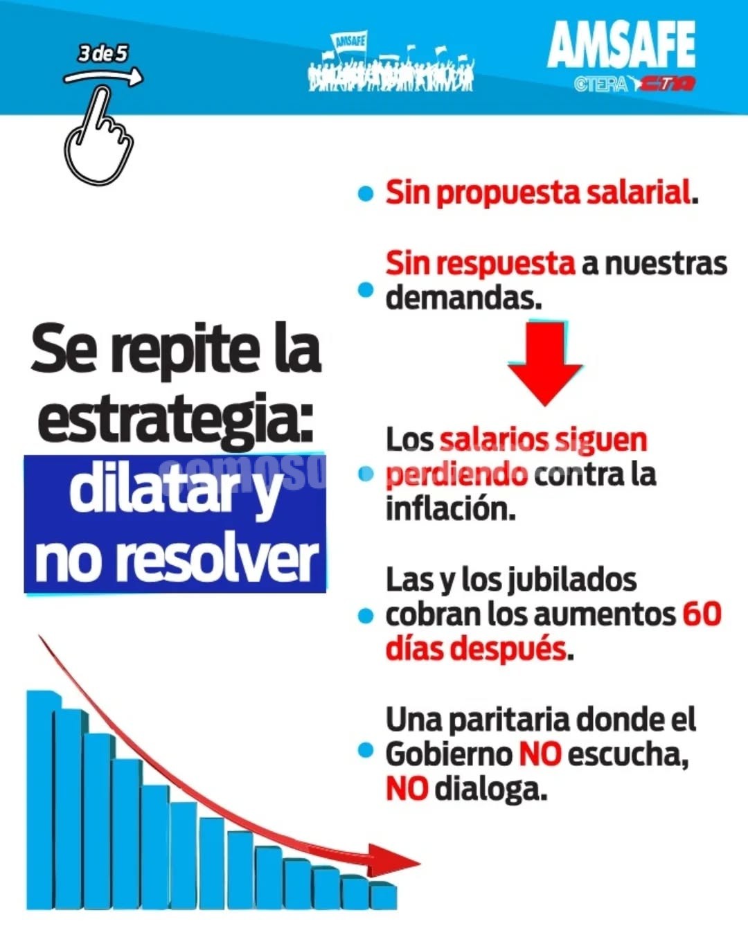 - Jubilados: Cuestionó el retraso de 60 días en los aumentos para los docentes jubilados.