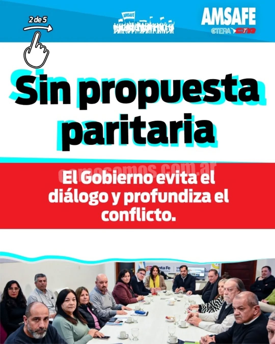 El gobierno de Santa Fe y los gremios docentes, liderados por AMSAFE, se reunieron de nuevo en una mesa de negociación paritaria. Sin embargo, no llegaron a ningún acuerdo y la reunión terminó con un «cuarto intermedio».