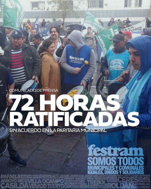 FESTRAM no renuncia a la lucha y ratificó el paro de 72 horas en todo el territorio santafesino, comenzando este miércoles 18 y continuando el jueves 19 y viernes 20, con movilizaciones el día jueves.