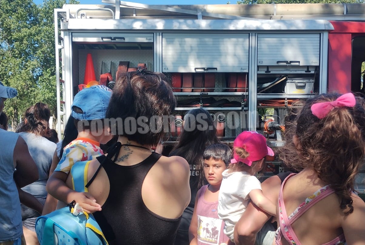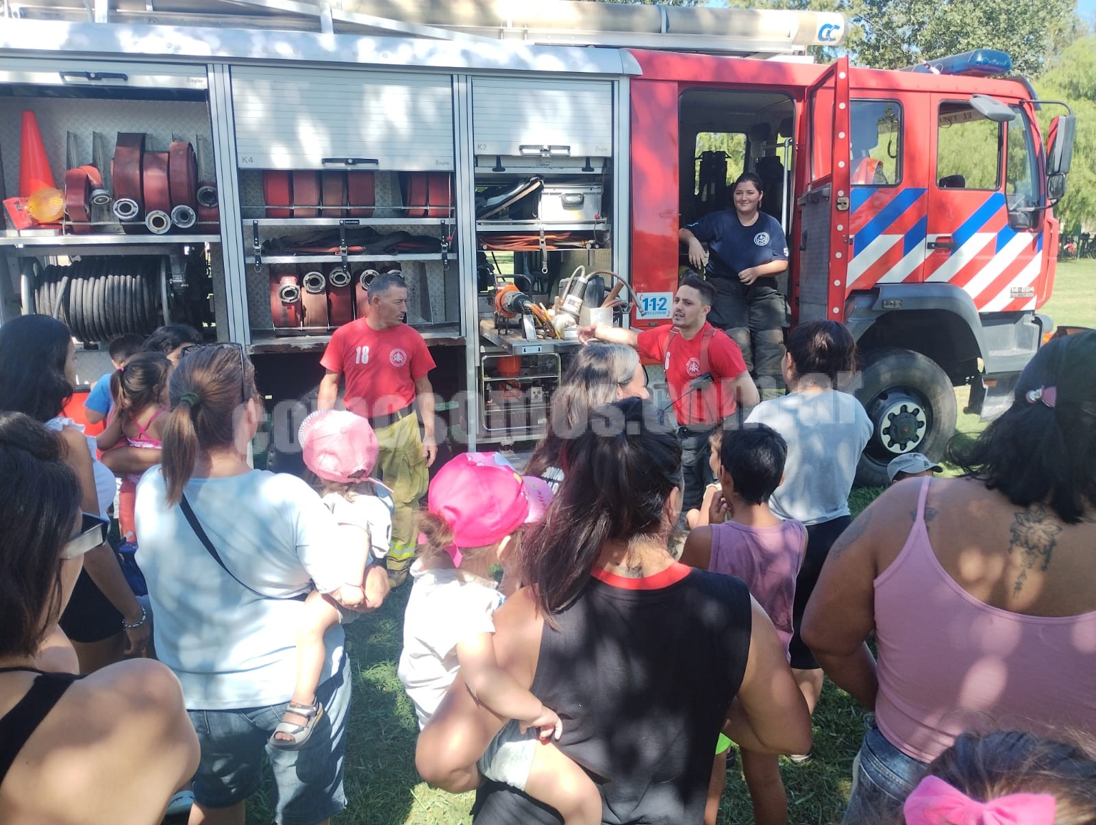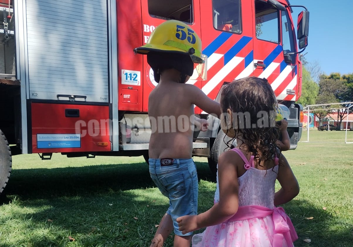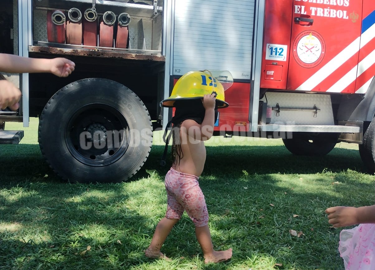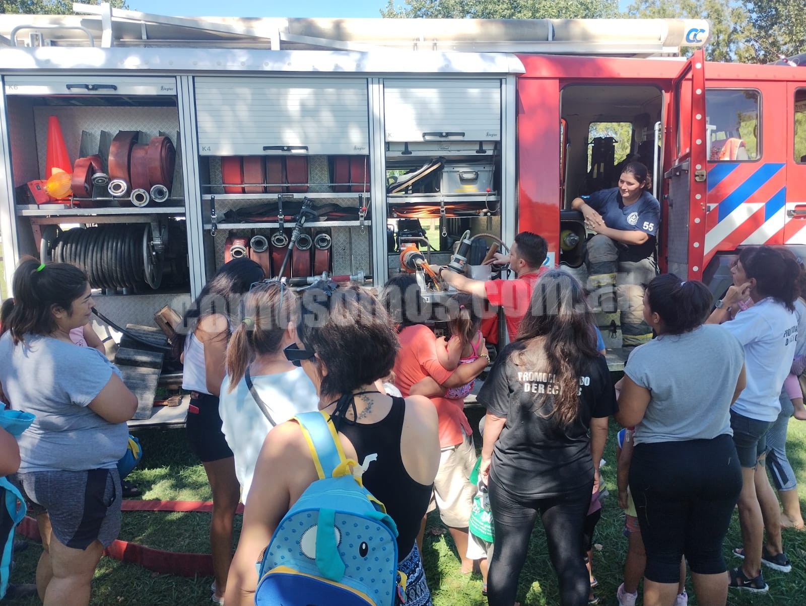 Acompañados por sus familias, los pequeños exploraron de cerca el funcionamiento de un camión y otros equipos, herramientas y elementos de trabajo de Bomberos Voluntarios. Desde las sirenas hasta las mangueras, cada detalle despertó su asombro y curiosidad.