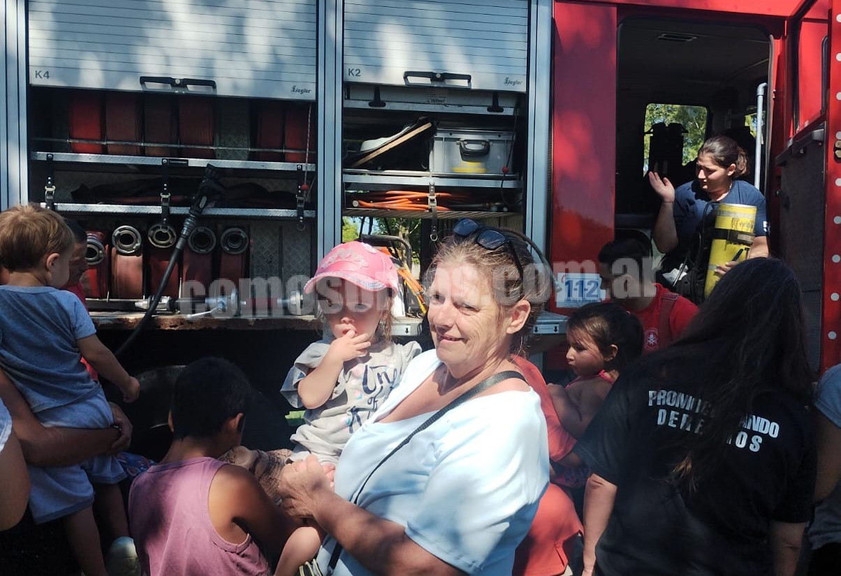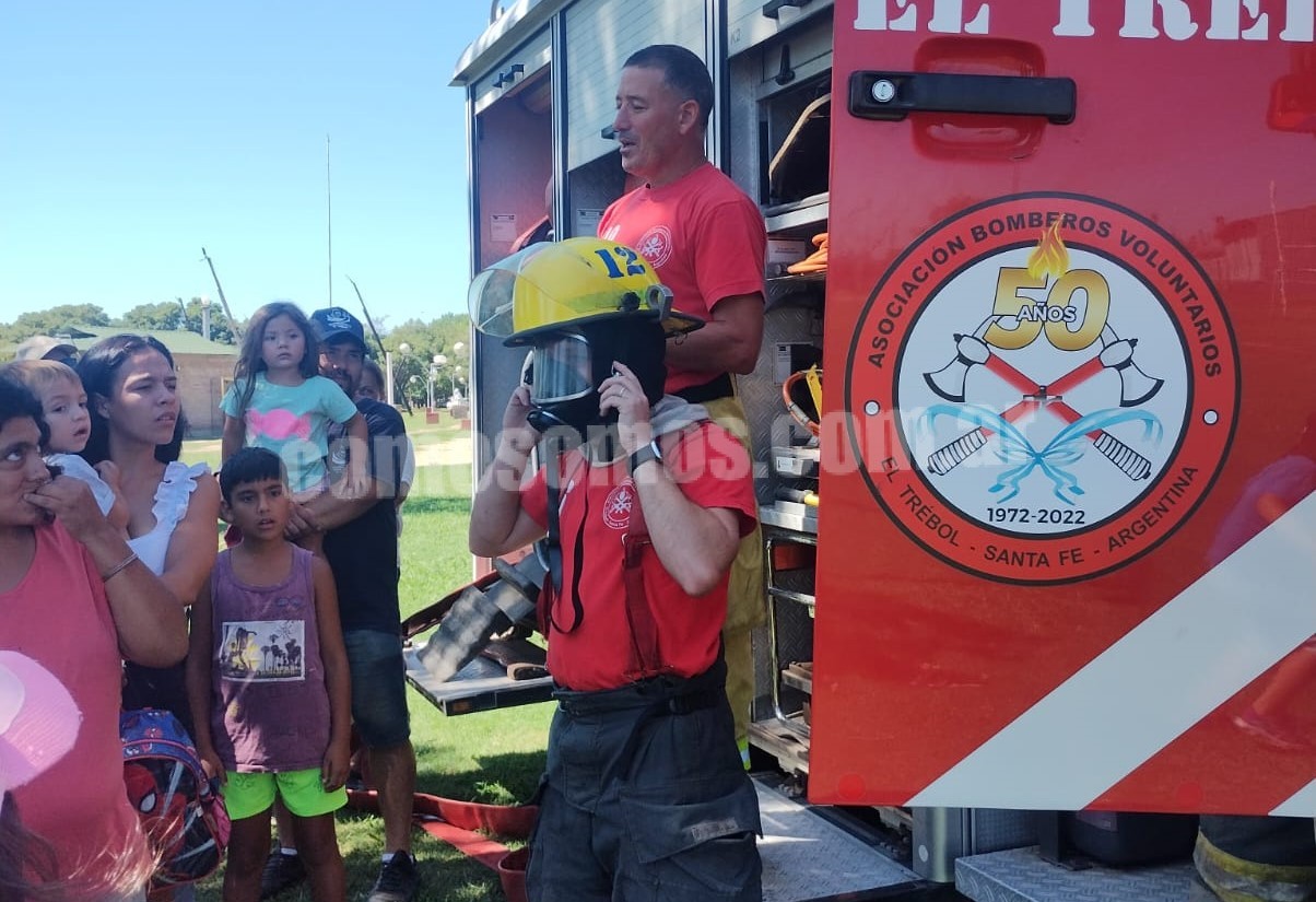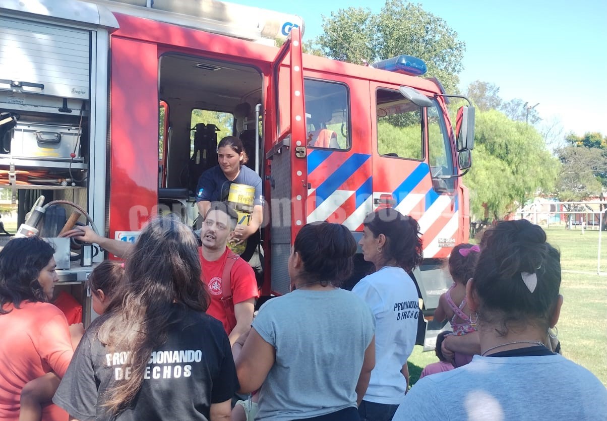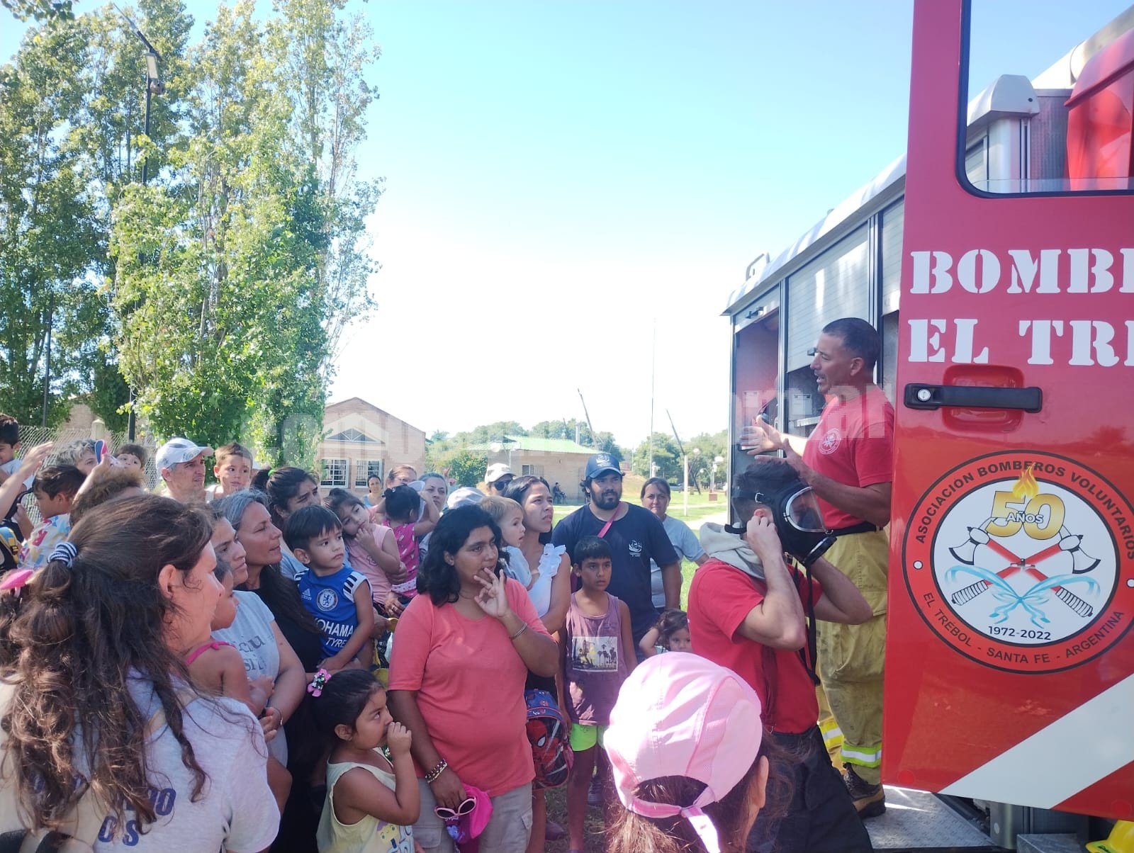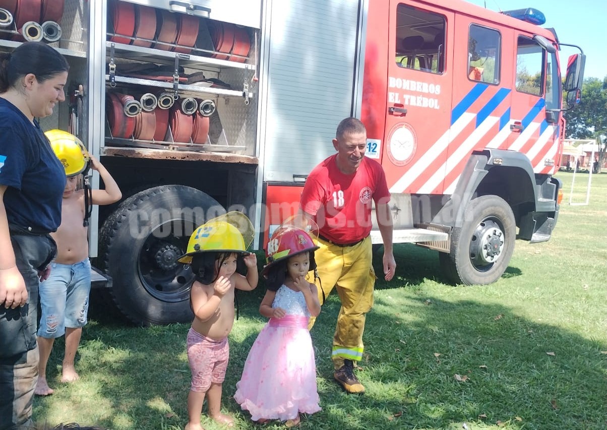 Acompañados por sus familias, los pequeños exploraron de cerca el funcionamiento de un camión y otros equipos, herramientas y elementos de trabajo de Bomberos Voluntarios. Desde las sirenas hasta las mangueras, cada detalle despertó su asombro y curiosidad.