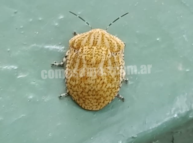 Un vecino de la localidad de El Trébol, Santa Fe, se encontró con este insecto en su jardín: un Tetyra poecila, también conocido como chinche metálica o chinche escudo.