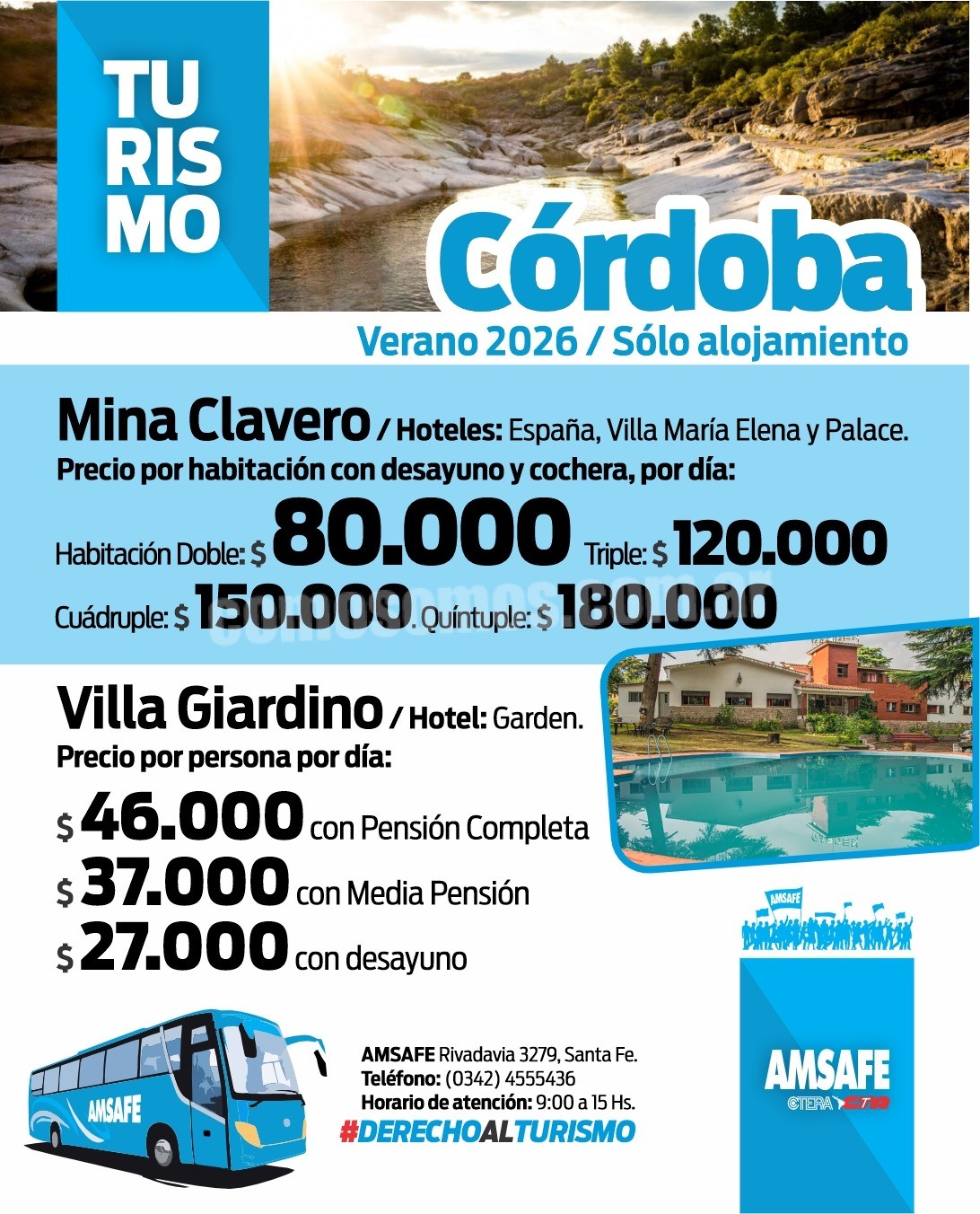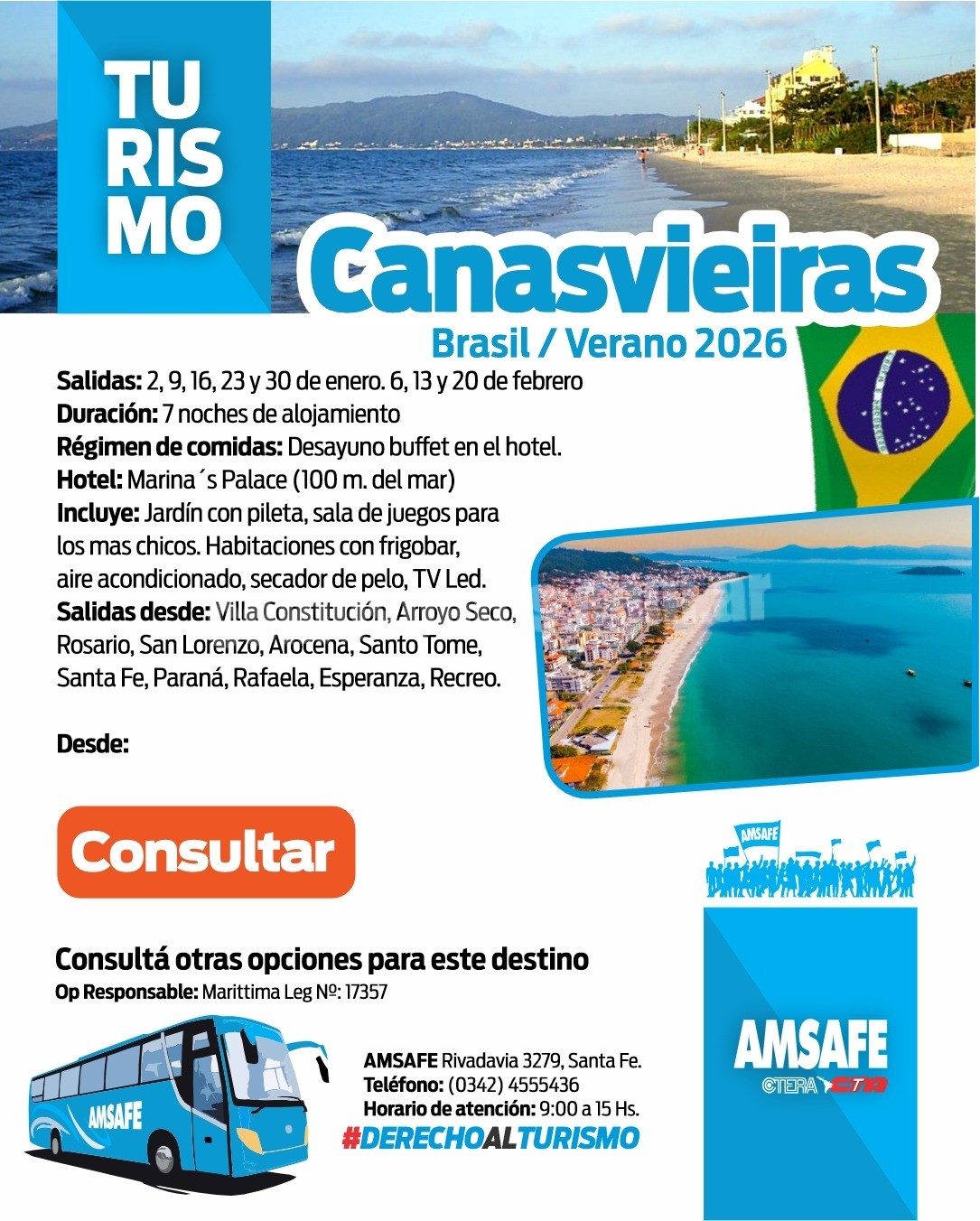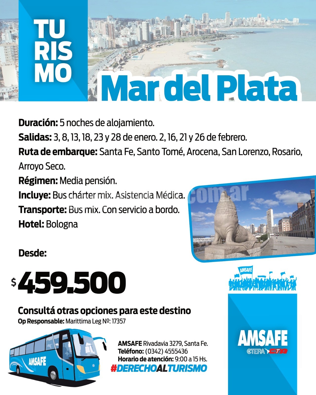 El delegado Marconetto invitó a la comunidad docente a acercarse a las sedes departamentales para obtener todos los detalles de los paquetes turísticos: “Los invito a todos y a todas a acercarse a las delegaciones de San Jorge, El Trébol y Cañada Rosquín de AMSAFE, San Martín, y consultar por estas promociones”.